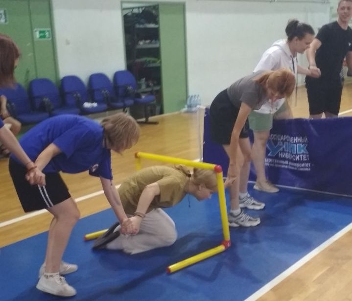 Вечером ребята встретились со студентами факультета физической культуры и спорта, которые под руководством декана – Валерия Вячеславовича Бойко, подготовили спортивно-развлекательные эстафеты. Команды сплоченно проходили станции, где нужно было проявлять ловкость, силу и смекалку.