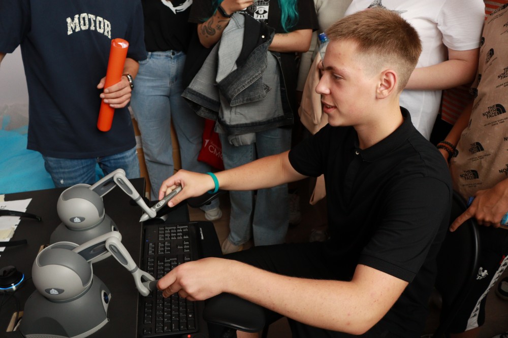 Ребята взаимодействовали с роботами одновременно слушая объяснения директора центра Андрея Вашунина о их предназначении и манипуляциях, которые можно с ними совершать. На станции для стоматологов желающие смогли попробовать управление 3D-тренажером и "залечить" зубы "пациента.