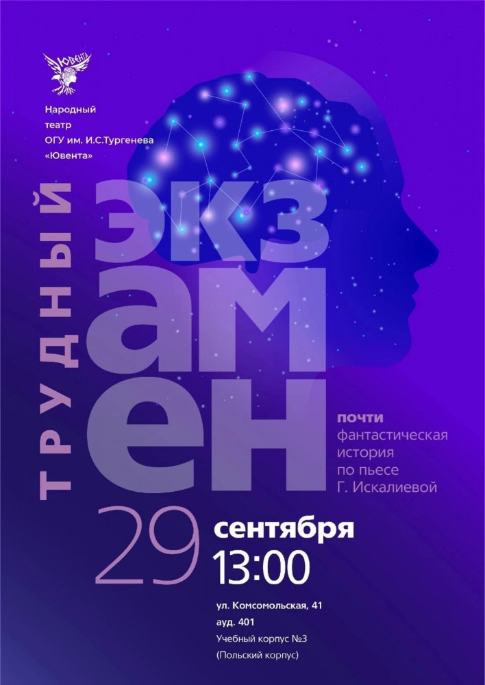 Народный театр "Ювента" совсем скоро представит вашему вниманию новый спектакль "Трудный экзамен" по одноимённой пьесе Гульнары Искалиевой.