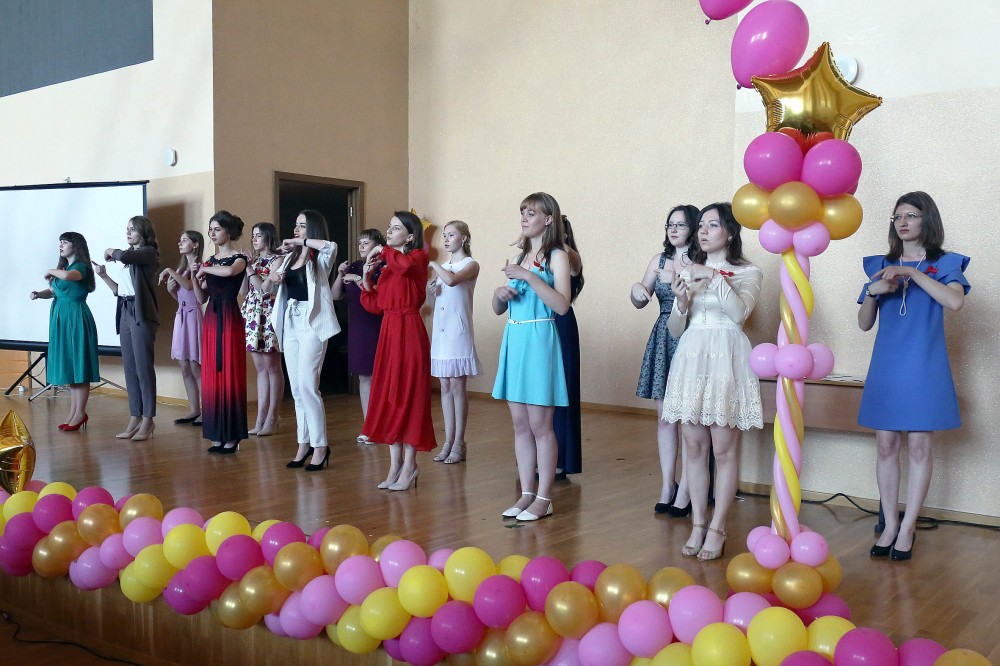 В свою очередь, выпускницы пятого курса нескольких специальностей решили креативно выразить свою признательность преподавателям, наградив их грамотами в очень оригинальных номинациях: «Человек-афоризм», «Девушка-сюрприз», «Всевидящее око», «Своя в доску» и др. Девушки очень тонко подметили стиль работы каждого преподавателя благодаря проведенным вместе с ними пяти годам обучения.