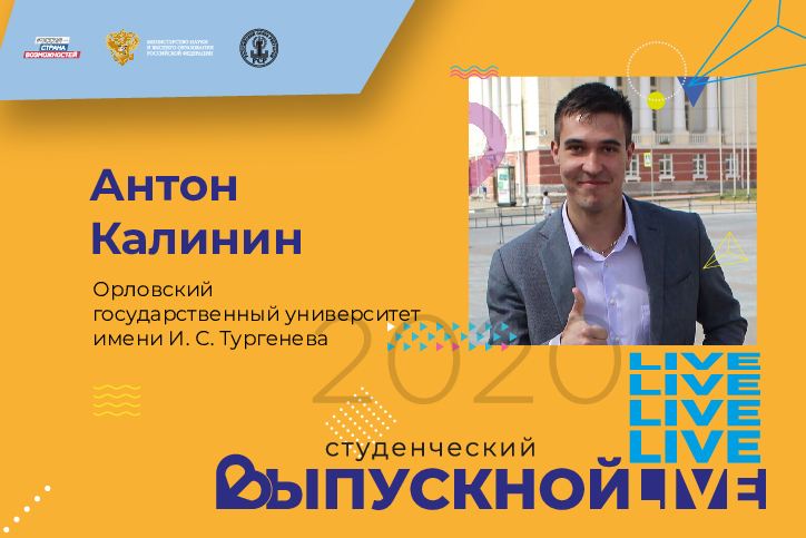 В рамках проведения Всероссийского студенческого онлайн-выпускного ОГУ имени И. С. Тургенева расскажет о лучших выпускниках 2020 года в трех категориях: "Общественная деятельность", "Наука" и "Образование".