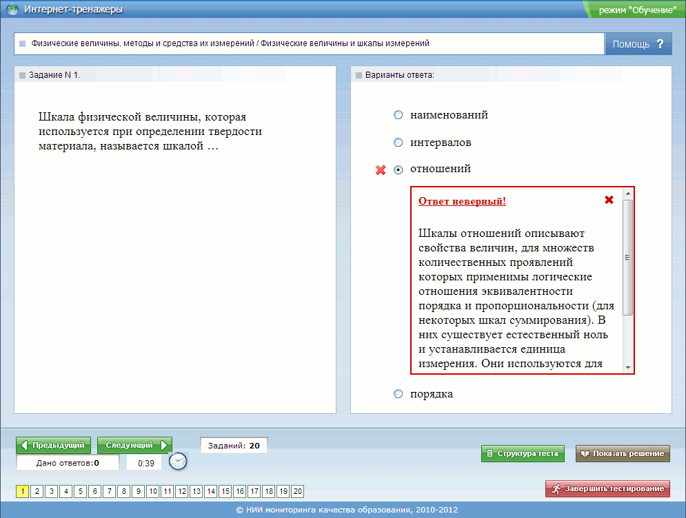 Тестирование в системе «Интернет-тренажеры в сфере образования» предусматривает наличие следующих режимов тестирования: