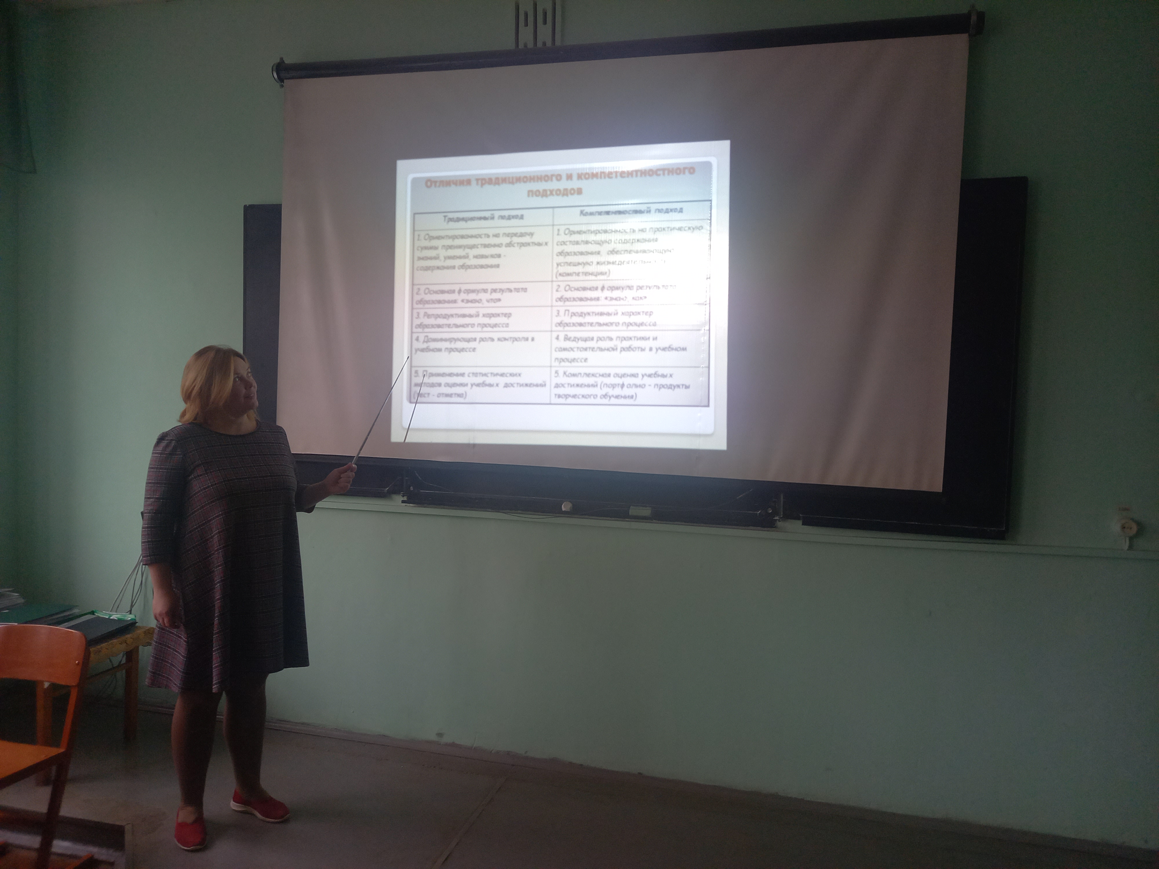 Преподаватель Конина Н.А. в своём докладе рассказала о сущности компетентностного подхода, об отличиях традиционного и компетентностного подхода. Было рассказано об алгоритме построения учебного занятия при компетентностном подходе. Представлены исследовательские задания при работе с обучающимися.