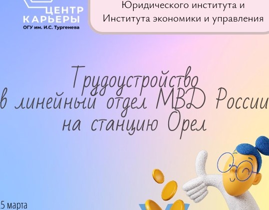 Трудоустройство в линейный отдел МВД России на станцию Орел