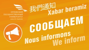 20 ноября в ОГУ имени И.С. Тургенева пройдёт просветительское мероприятие с лектором общества Знание Александром Лукьяновым 17.11.2025 Подробнее ОбразованиеОбъявленияСтуденчество