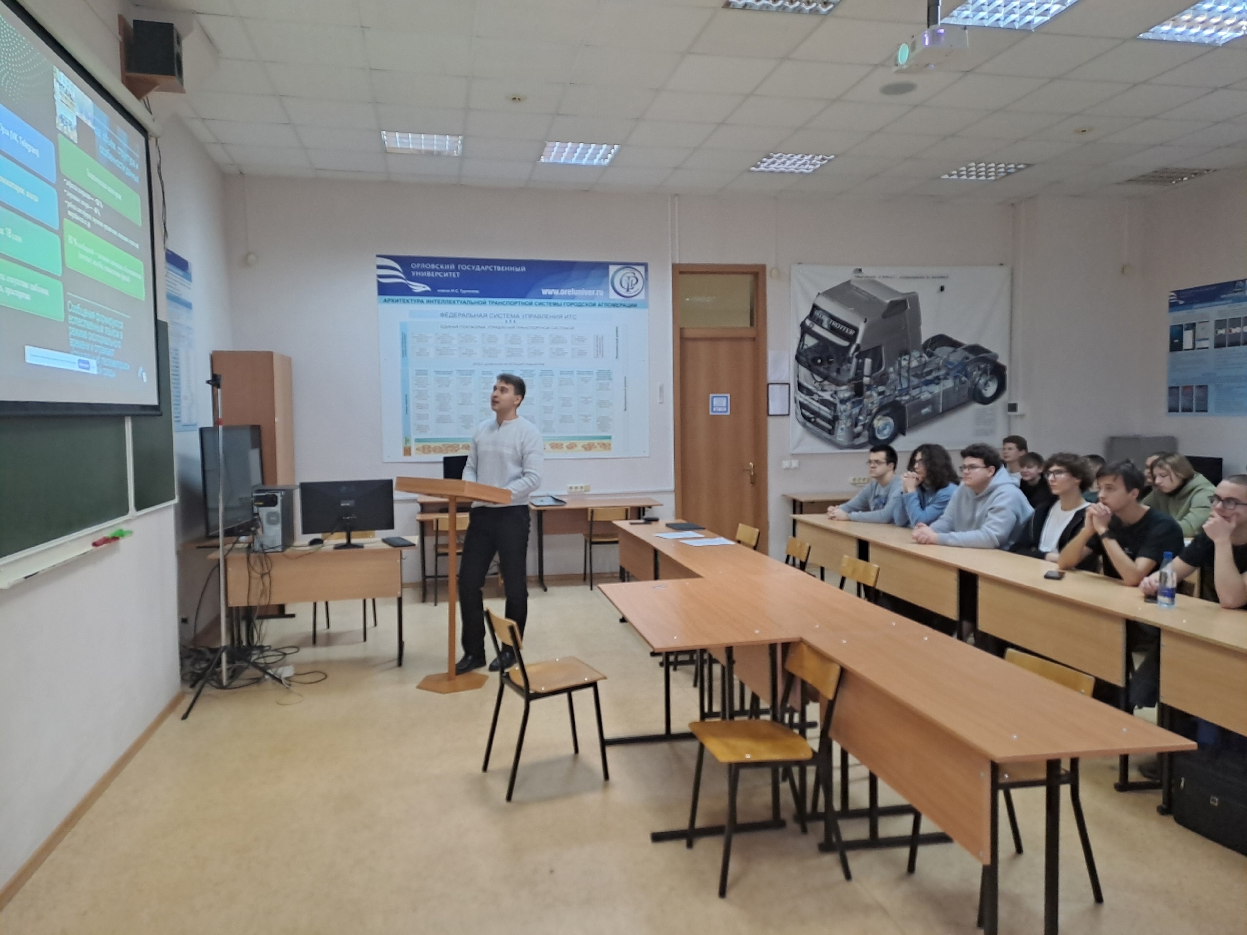 11 октября 2025 года доктор технических наук, профессор кафедры сервиса и ремонта машин, депутат Государственной Думы Еремин Сергей Васильевич провел лекции для студентов групп 41НТС, 51НТС, 53НТС и 41ТТ по дисциплинам «Основы законодательства в сфере дорожного движения», «Введение в профессиональную деятельность» и «Технология и организация процессов перевозки».