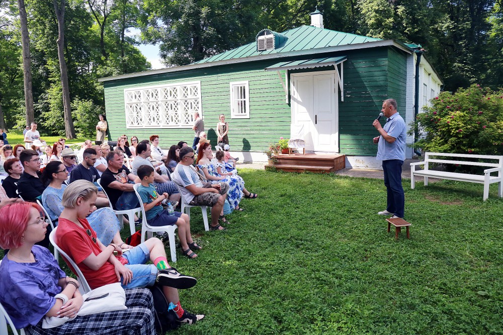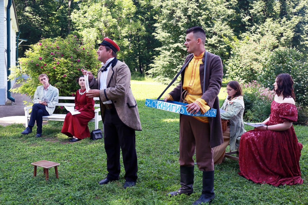 — Он был у нас в репертуаре и нам необходимо было лишь «привязать» его к месту. Не сразу нашли это место, было три варианта, где и нам и зрителю будет удобно. Остановились на поляне между зданием основной усадьбы и флигелем изгнанника. Хороший получился уголок — и в тени, и камерно, и удалось перенестись в эпоху, описанную в рассказе. Для этого нам понадобилась всего одна выездная репетиция. У ребят хороший игровой опыт, да и участие в фестивалях, где порой за два часа надо приноровиться к новой сцене, иной акустике, помогло.