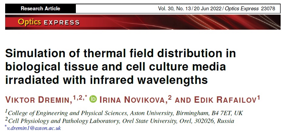 Коллективом лаборатории клеточной физиологии и патологии научно-технологического центра биомедицинской фотоники опубликовано 2 новых статьи в журналах "Optics Express" (Q1, IF= 3.894) и "Life Sciences" (Q1, IF=5.037).
