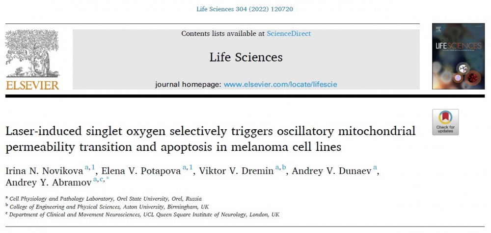 Новые публикации коллектива лаборатории клеточной физиологии и патологии НТЦ биомедицинской фотоники