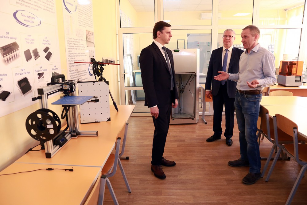 И.о. завкафедрой АСУиК Николай Маркин показал губернатору лаборатории, техническое оснащение которых позволяет будущим специалистам по автоматизации получать необходимые навыки и компетенции.