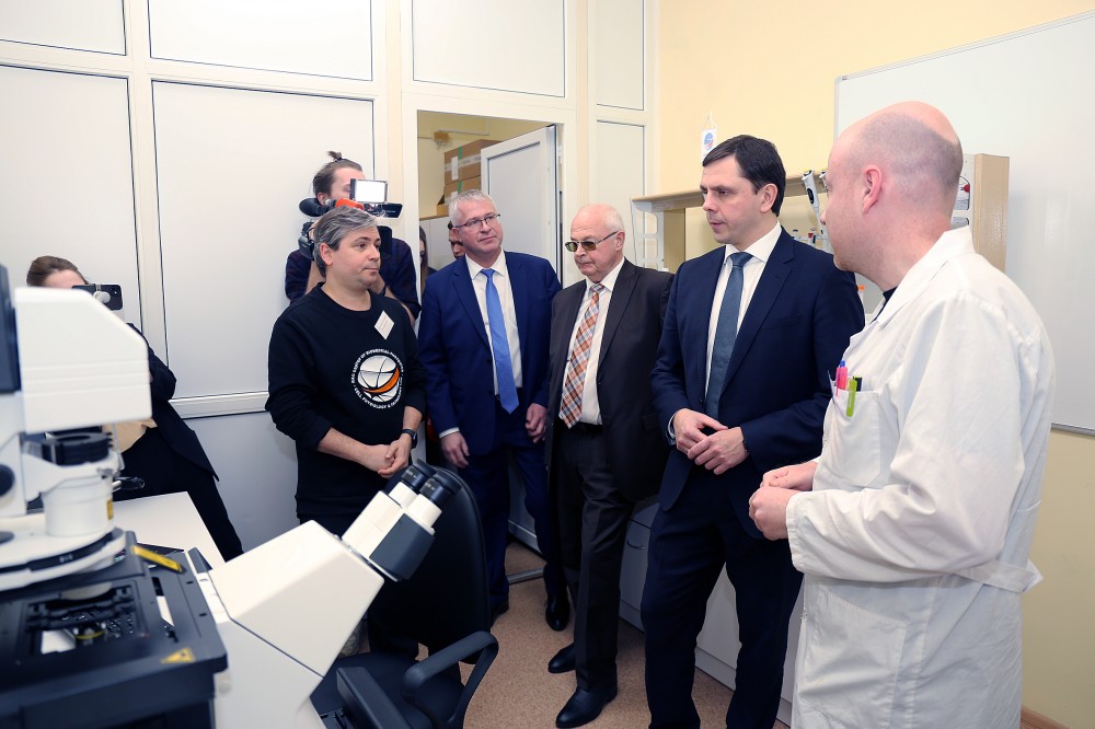 Визит руководства региона начался с обзорной экскурсии по лабораториям Научно-технологического центра биомедицинской фотоники и кафедры автоматизированных систем управления и кибернетики. Ученые НТЦ рассказали о проходящих здесь исследованиях с использованием современного оборудования, в том числе в рамках "мегагранта" "Митохондрии как мишени в механизме нейродегенеративных заболеваний". Также Андрей Евгеньевич на себе испытал одну из разработок команды центра - прибор "Лазма-ПФ", основанный на неинвазивных методах диагностики. Именно с помощью этого устройства проходило изучение реакции капиллярного кровотока космонавтов на микрогравитацию во время космического эксперимента на МКС. Напомним, его сопостановщиком выступил НТЦ биомедицинской фотоники.