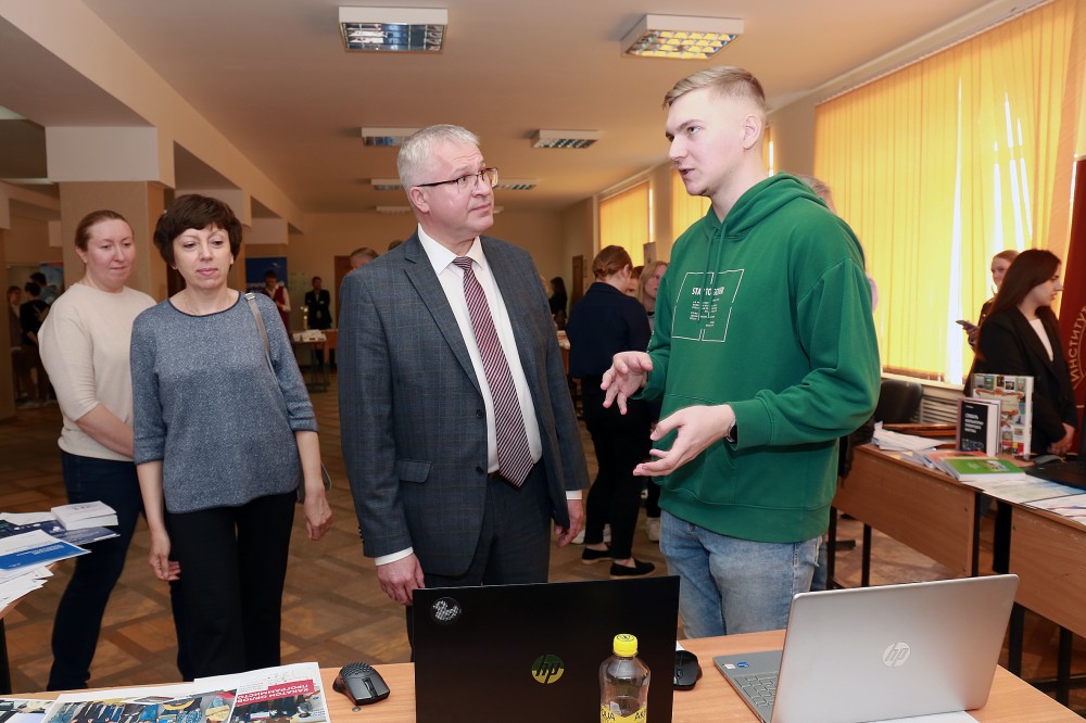 Параллельно с этим, в фойе актового зала корпуса №11 расположилась выставка студенческих научных работ и проектов. Таким образом, о научной деятельности наших студентов можно было не только услышать, но и увидеть её результаты собственными глазами.