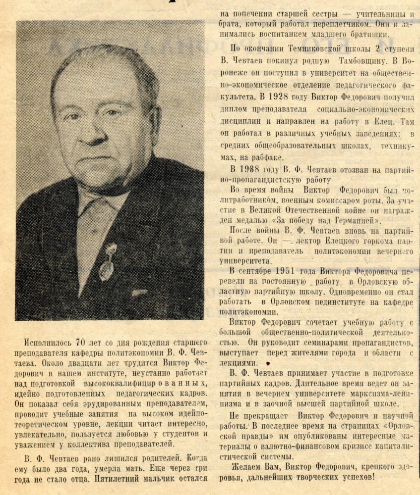 "Научный полк" ОГУ имени И. С. Тургенева: Виктор Федорович Чевтаев