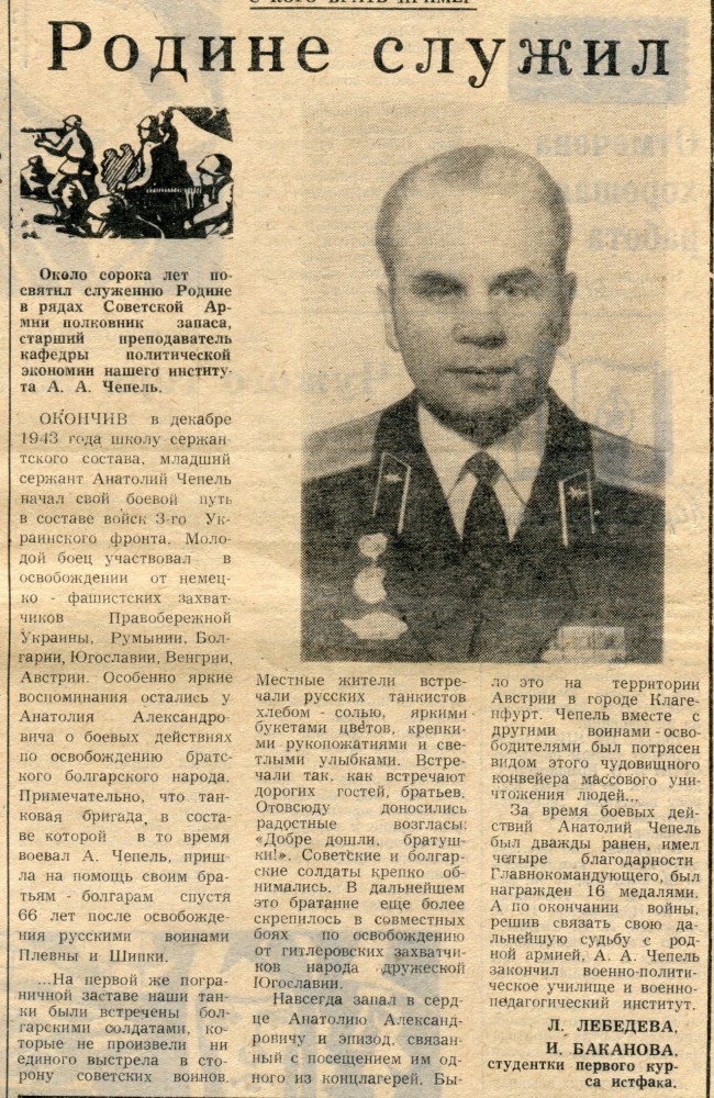 Из газеты "За педагогические кадры" от 21 февраля 1986 г.: