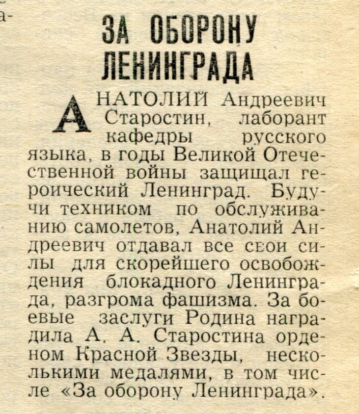 "Научный полк" ОГУ имени И. С. Тургенева: Анатолий Андреевич Старостин