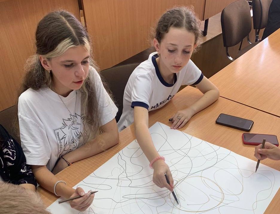 Далее участники «Университетских смен – 2023»попробовали себя в нейрографике. С помощью рисунка ребята пытались найти ответы на свои вопросы, а также справиться с негативными эмоциями и установками.