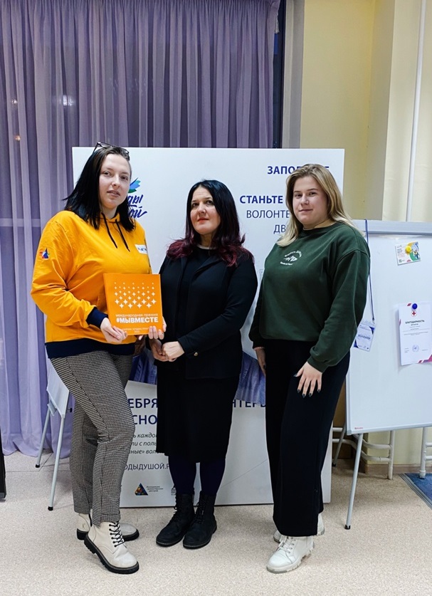 Директор ресурсного центра добровольчества Елена Баженова и сотрудники центра Анастасия Синатова и Валерия Лемешева познакомили будущих волонтеров с работой Ресурсного центра добровольчества, рассказали кто такой волонтер и как работать с платформой добро.ru.