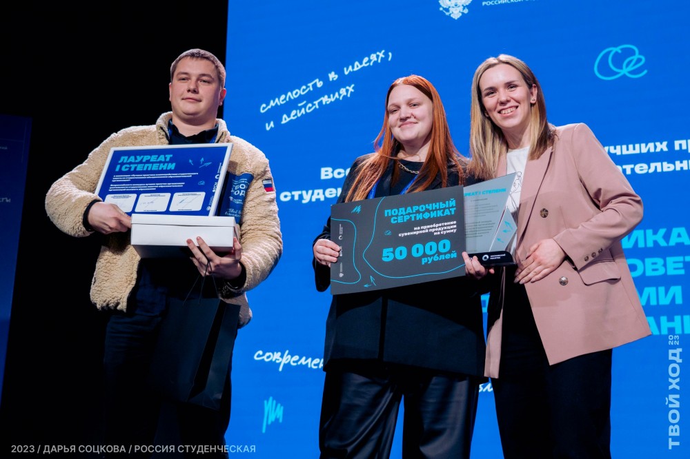 - В номинации «Патриотическое объединение года» - поисковый отряд «Ермолов» в составе Максима Юркова и Дарья Макаровой, студентов Института естественных наук и биотехнологии и Григория Илюшечкина, студента исторического факультета,