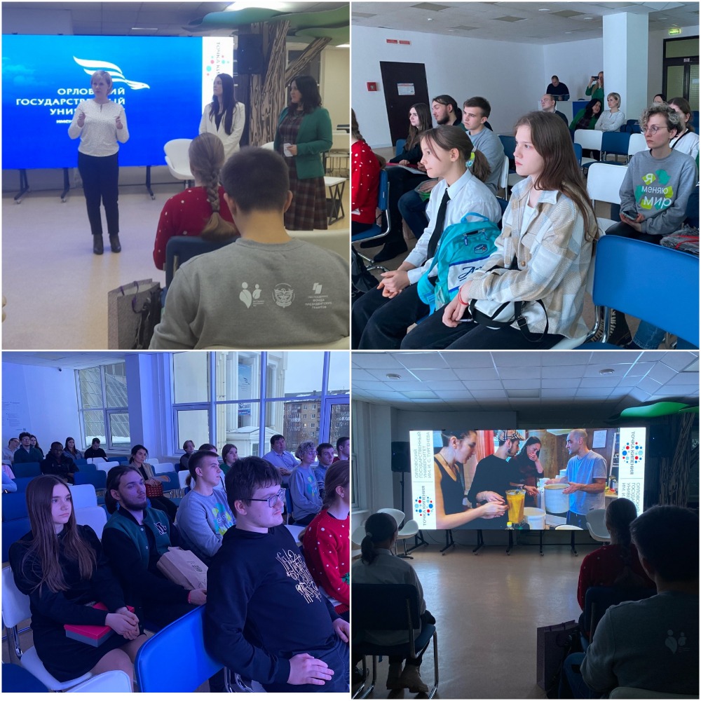 Директор РЦД Орловской области, к.э.н., доцент кафедры менеджмента и государственного управления Елена Баженова рассказала школьникам и иностранным учащимся о работе ресурсного центра добровольчества в Орловской области и возможностях участия в волонтерской деятельности.
