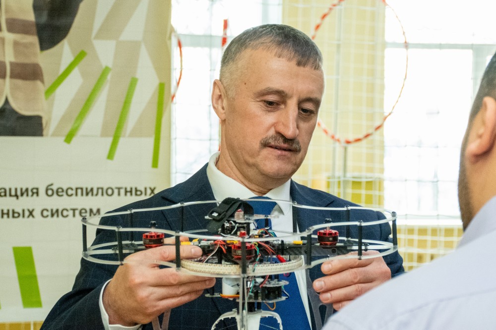 Завершился визит посещением Центра междисциплинарного инжиниринга и лабораторий кафедры автоматизированных систем управления и кибернетики, в которых студенты изучают 3D-моделирование и печать, разрабатывают и программируют беспилотные летательные аппараты.
