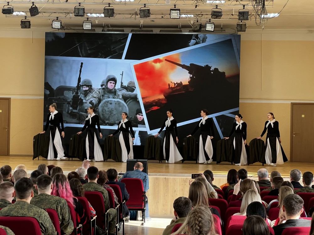 Также на сцену поднялись участник СВО, кавалер Знака отличия ордена Святого Георгия и Георгиевского креста IV степени Дмитрий Агошков, заместитель начальника военного учебного центра, кавалер ордена «За заслуги перед Отечеством» II степени, награжденный медалью «За отвагу и боевые отличия», подполковник Сергей Румянцев, участник боевых действий I Чеченской кампании, старший преподаватель Военного учебного центра Геннадий Пантюхин, участник вооруженного грузинско-абхазского конфликта, кавалер ордена Мужества, полковник запаса, доцент Военного учебного центра Николай Москалец.