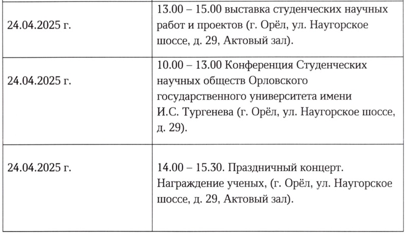 Выставка студенческих работ и проектов, конференция студенческих научных обществ ОГУ имени И.С.Тургенева, праздничный концерт пройдут в рамках "Недели науки - 2025" 24 апреля 2025 года.