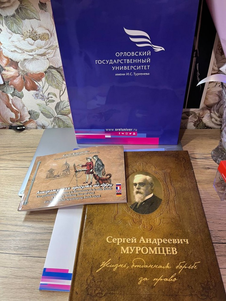После дискуссии Мария Егорцова передала подарок Марии Захаровой – авторскую книгу Д.В. Аронова «Биография С.А. Муромцева» и брошюру А. Кондратенко «Литературные прогулки по Орлу». Школьница также рассказала об Орловском государственном университете им. И.С. Тургенева, где она обучается.