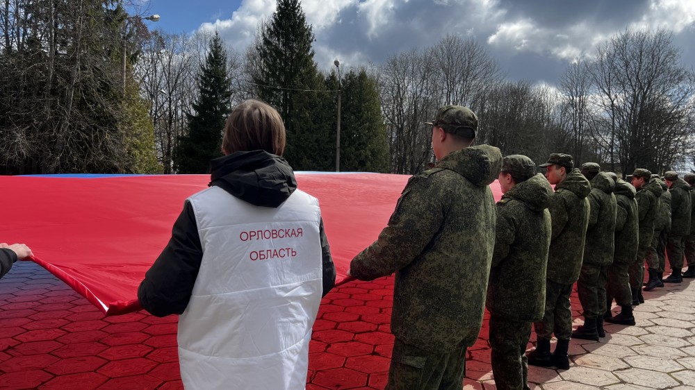 Масштабный флаг был доставлен в Орёл по инициативе Общероссийской общественной организации «Всероссийский комитет поддержки Путина», которую возглавляет Роман Путин — председатель правления Фонда поддержки и развития отечественного высшего образования «Русский академический фонд».