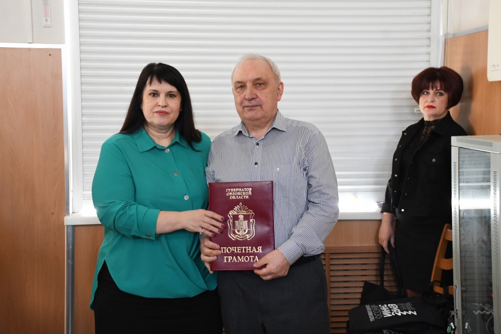 Почётной грамотой Губернатора Орловской области награждён Владимир Панюшкин, за многолетнюю добросовестную работу в системе высшего образования, большой вклад в подготовку высококвалифицированных специалистов.