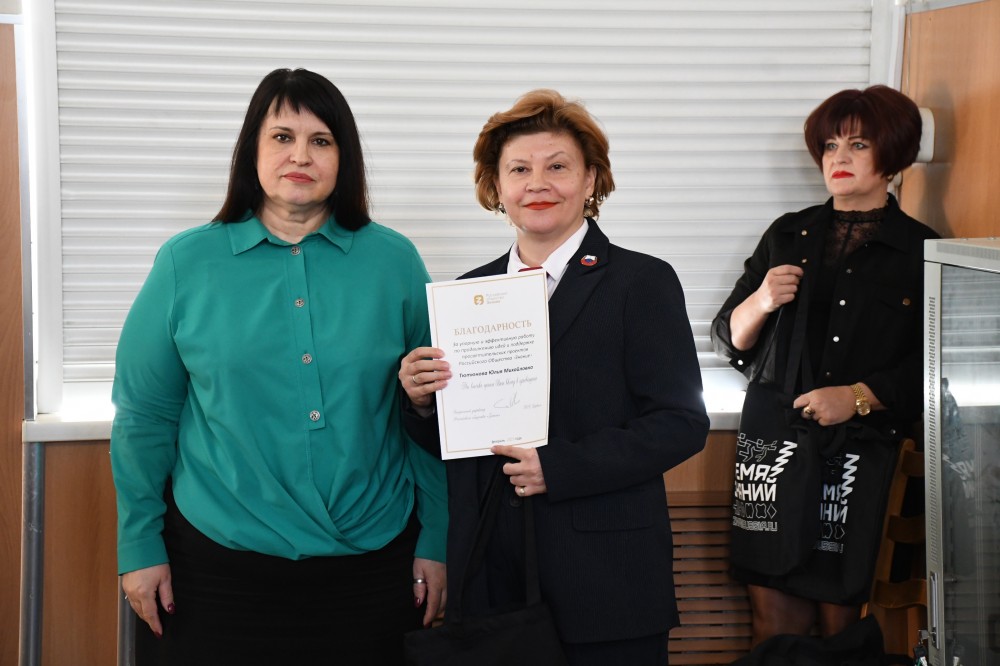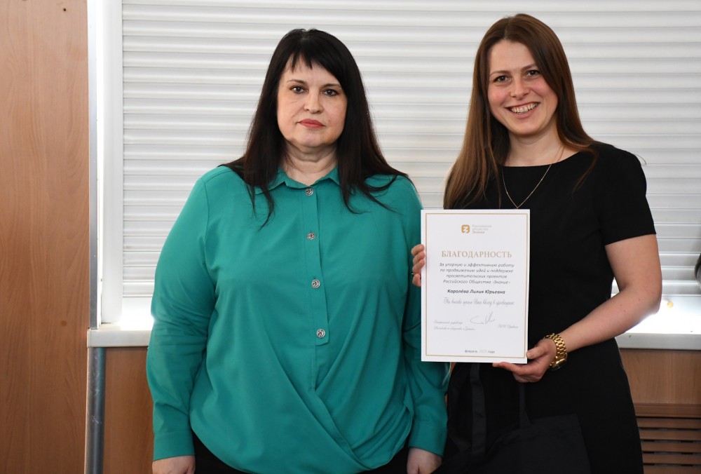 Российское общество «Знание» выразило благодарность за упорную и эффективную работу по продвижению идей и поддержке просветительских проектов Российского общества «Знание»: