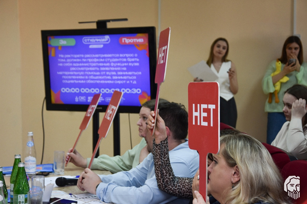 Последним конкурсным этапом стал «Управленческий поединок», в рамках которого участникам предстояло отстоять свою позицию, используя весомые аргументы и правила ведения переговоров.