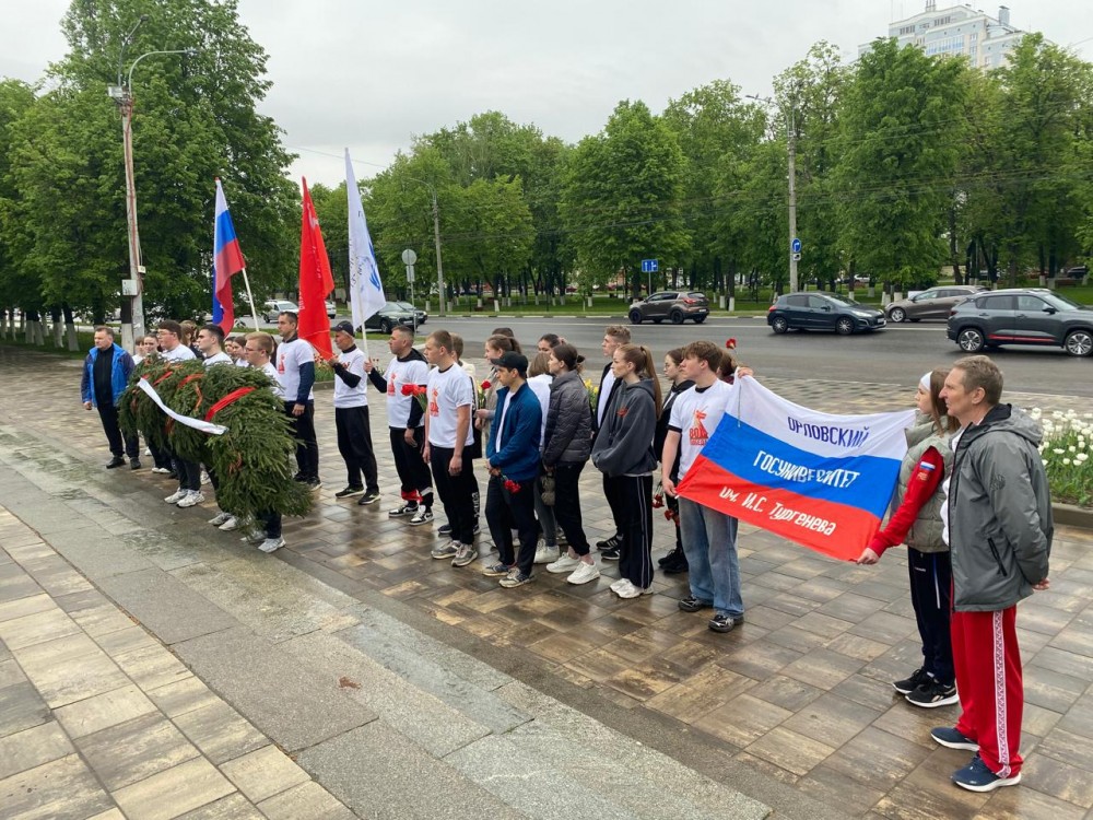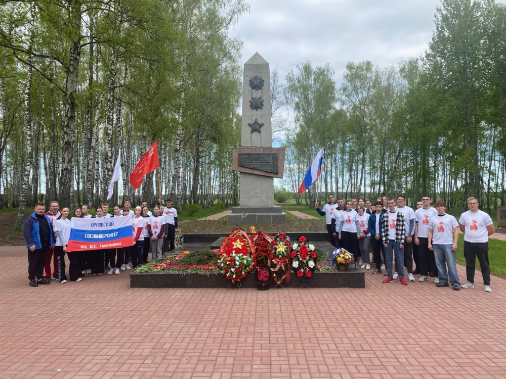 Утро началось со сбора у главного корпуса университета. Студенты возложили гирлянду памяти к памятнику комсомольцам, погибшим в годы Великой Отечественной войны. Далее участники отправились в поселок Тросна Болховского района, где состоялось еще одно памятное возложение – к Братской могиле советских воинов.
