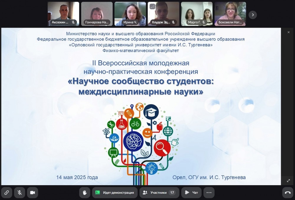 14 мая 2025 года на базе физико-математического факультета Орловского государственного университета имени И.С. Тургенева прошла II Всероссийская молодёжная научно-практическая конференция «Научное сообщество студентов: междисциплинарные науки».