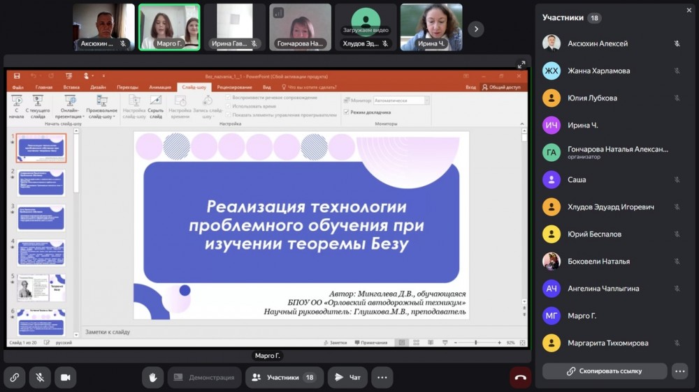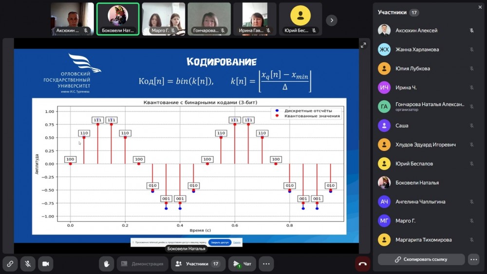 Хотелось бы выделить следующие доклады – «Цифровая трансформация сигналов: от аналоговой волны к дискретным данным» (Наталья Боковели); «Геодезические траектории на искривленных поверхностях: аналитический и прикладной аспекты» (Михаил Лабуз), «Реализация технологии проблемного обучения при изучении теоремы Безу» (Дарья Мингалева); «Инновационные подходы к планированию туристических маршрутов с использованием Яндекс Панорам» (Эдуард Хлудов).