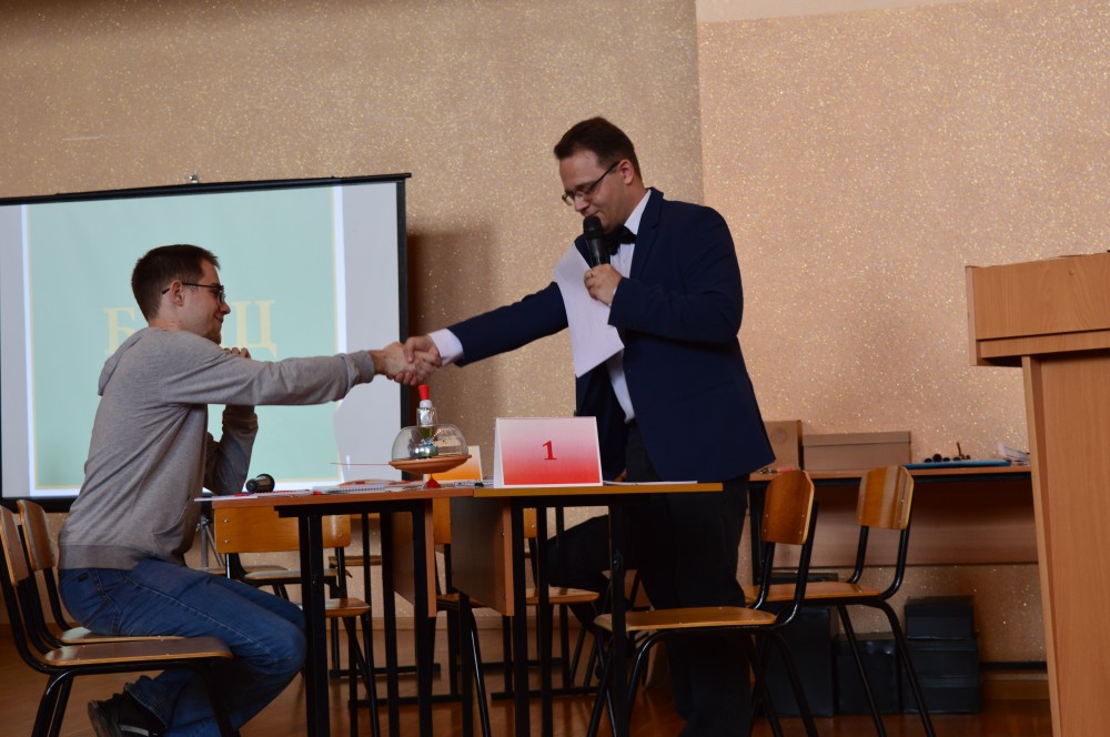 После музыкальной паузы второй этап игры для команды-финалиста был решающим, так как задача пятикурсников заключалась в том, чтобы добрать недостающие очки и обыграть ведущего, в связи с чем интеллектуальный поединок выдался сильным и очень достойным. Ребята собрались, одержав победу в блице и верно назвав то, что скрывалось внутри черных ящиков. Несмотря на положительную динамику в конце игры, финальный счет – 5:6 был в пользу ведущего.