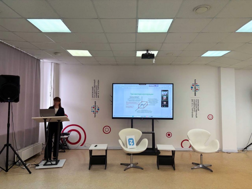 Пленарное заседание конференции прошло на территории Точки кипения ОГУ имени И.С. Тургенева и включало выступление ведущих спикеров и заседание Круглого стола «Финансовые технологии и безопасность».