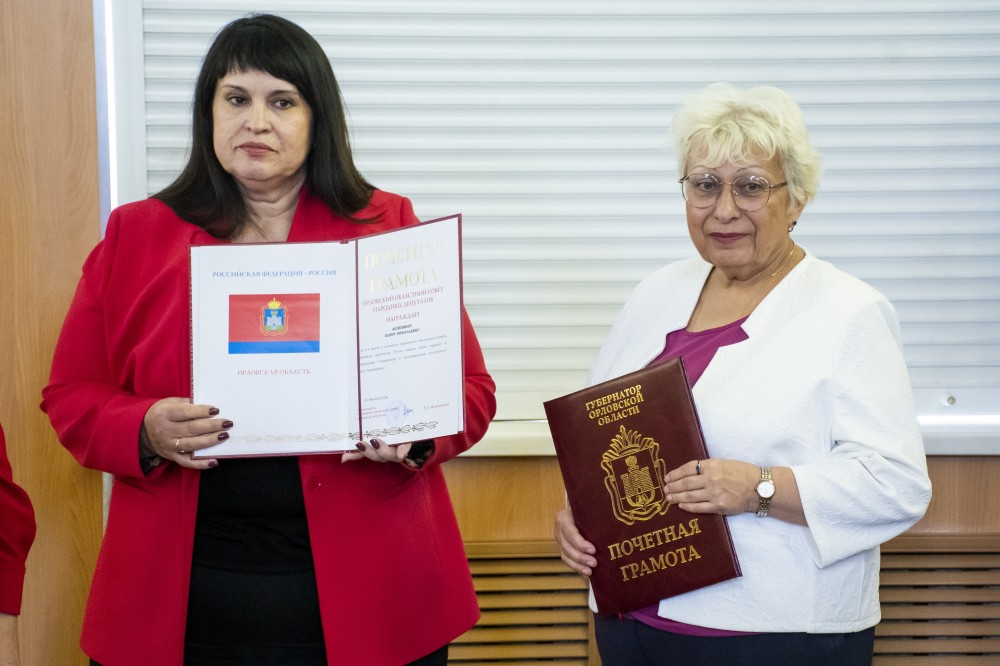 Орловский областной совет народных депутатов наградил Елену Ашихмину за I место в конкурсе Орловского областного Совета народных депутатов «Пусть память книга оживит» в номинации «Сохранение и популяризация культурного кода Орловщины».