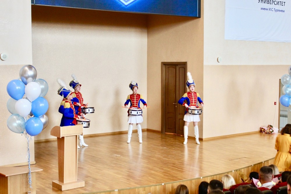 Выпускной-2025 начался с чествования студентов факультета. Праздничное мероприятие открыл Ансамбль барабанщиц «Триумф», затем прозвучал гимн РФ. Декан факультета Людмила Губарева, заместитель декана по социальной и воспитательной работе Самира Дугина и заместитель декана по учебной работе Светлана Дерепаско обратились к выпускникам, преподавателям, родителям и гостям праздника.