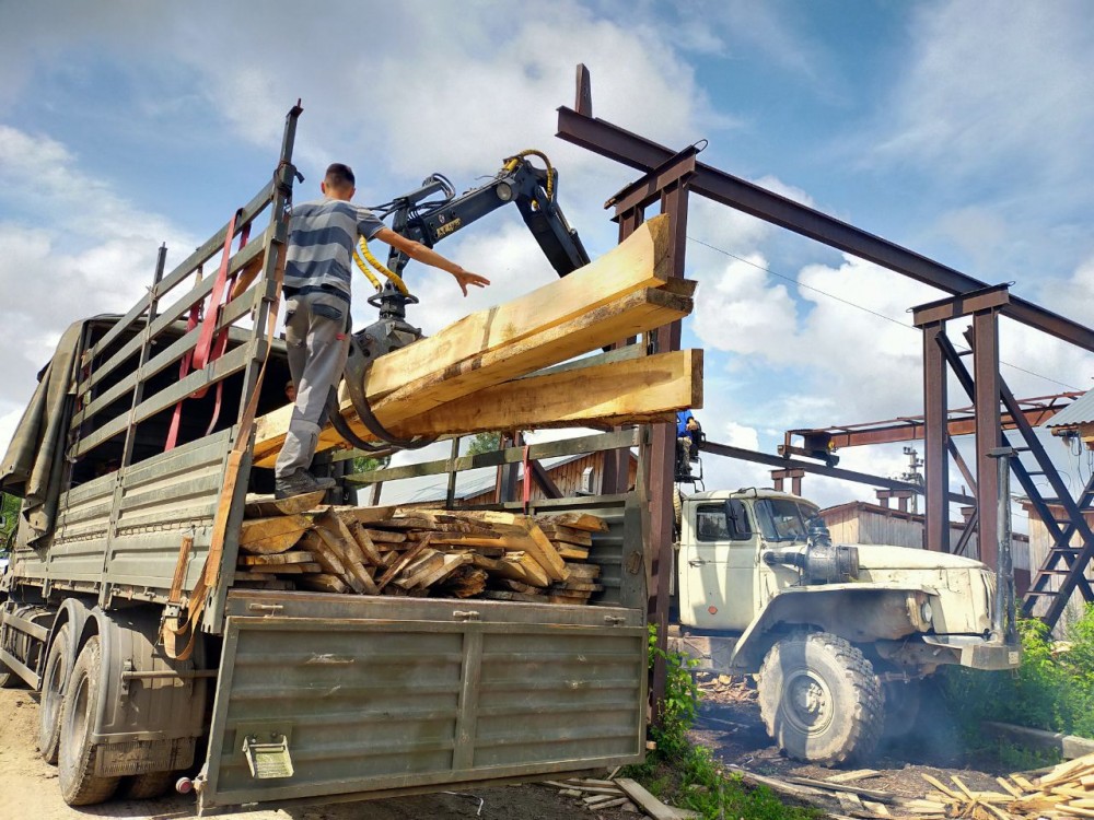 Пиломатериал был заранее приготовлен на пилораме в Калужской области. Здесь его распилили на 6 метровую длину, чтобы уложить материал в кузова грузовиков. Затем партнеры университета помогли загрузить пиломатериал в грузовики, которые довезли груз до места дислокации воинского подразделения.