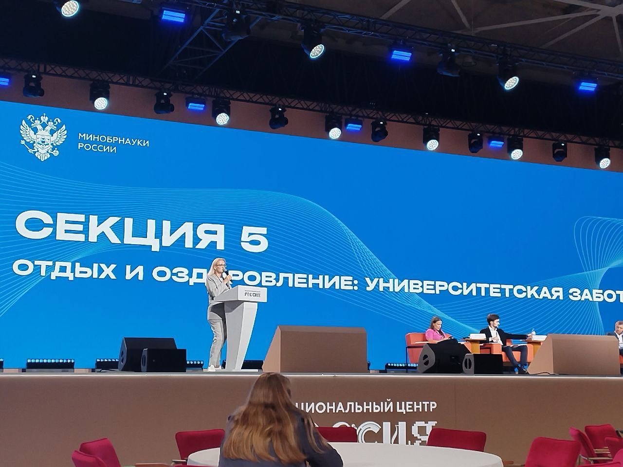Рабочее совещание по развитию молодежной политики и воспитательной деятельности в вузах проходит в Национальном центре Россия. Организатором выступило Министерство науки и высшего образования Российской Федерации.