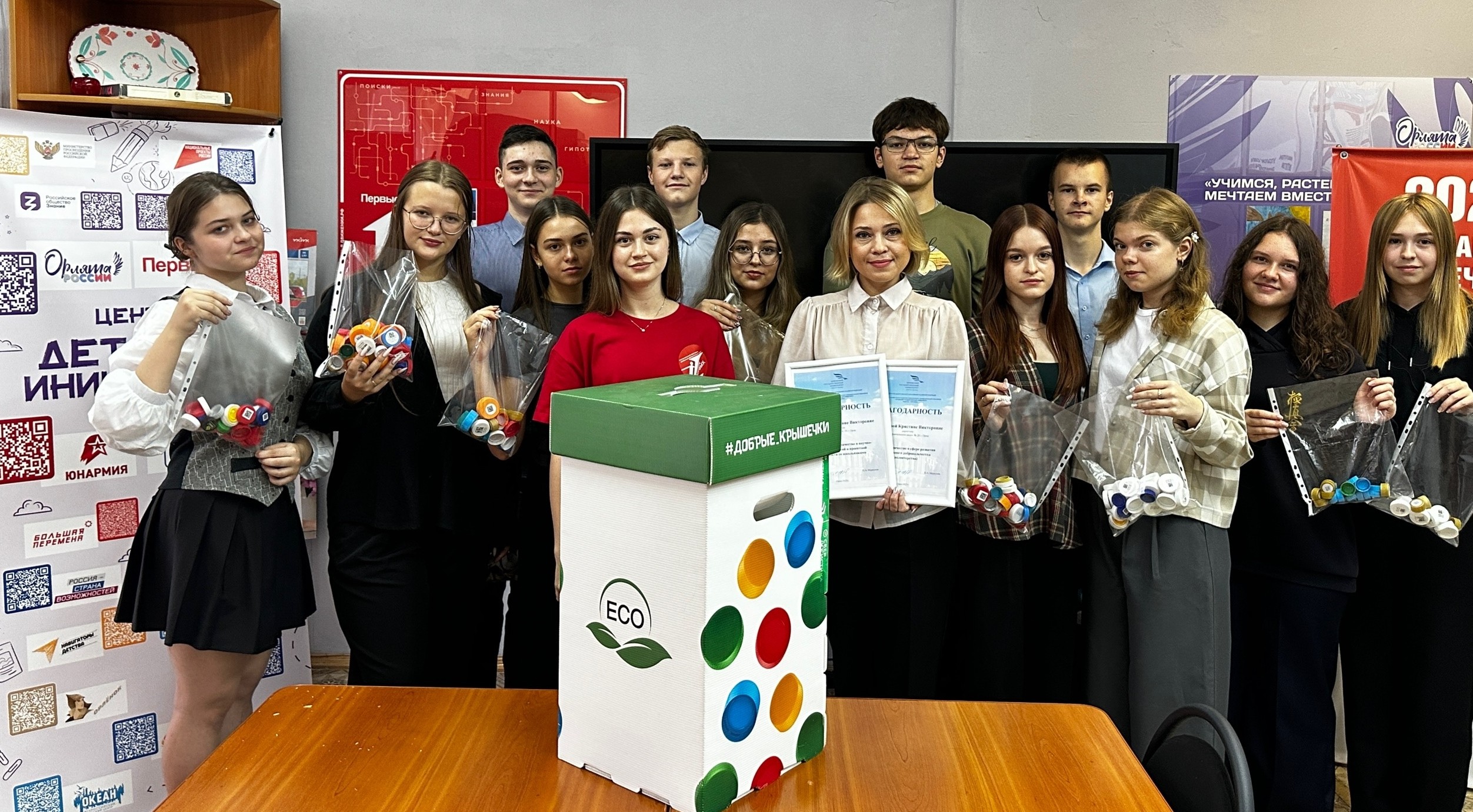 Пузановой Полиной студенткой Юридического института, наставником волонтерского отряда МБОУ СОШ №2 г. Орла, была проведена экологическая акция "Крышка-малышка".