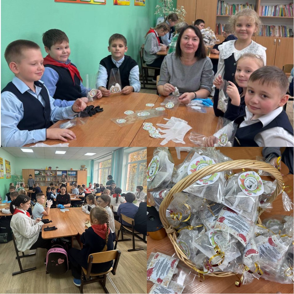 Варварой Гончаренко, студенткой Юридического института, наставником волонтерского отряда МБОУ СОШ №6 г.Орла и Наталья Касьянова сотрудник Ресурсного центра добровольчества доцент кафедры теории и истории социальной педагогики и социальной работы ФГБОУ ВО «ОГУ имени И.С.Тургенева», приняли участие в патриотической акции «Иммунный щит для бойца». Вместе с учениками наставники изготовили чайные наборы с тёплыми пожеланиями. Акция «Иммунный щит для бойца» укрепила патриотические чувства школьников, развила эмпатию и желание проявлять заботу. Рукотворные чайные пакетики стали ценным символом поддержки и единства, демонстрируя военнослужащим, что их помнят и ценят. В акции приняло участие 25 школьников.