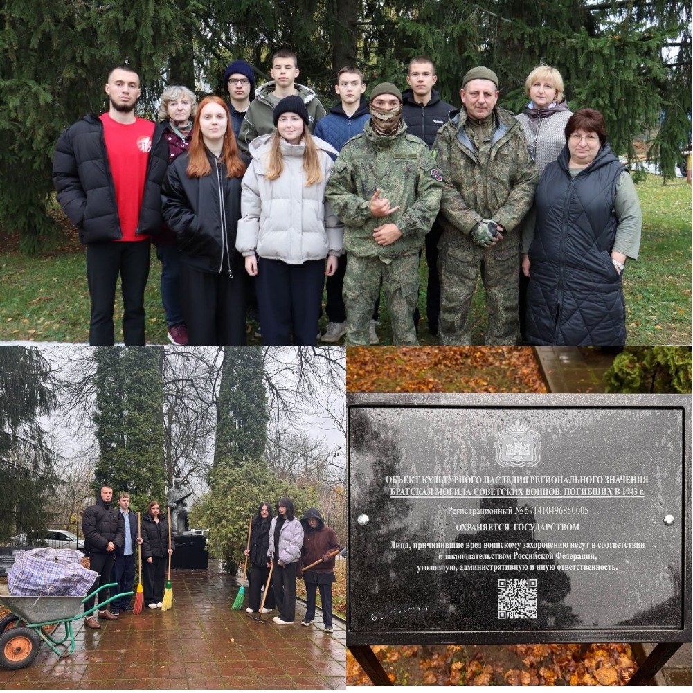 Дорофеева Эмилия, студентка 4 курса Юридического института, наставник волонтерского отряда МБОУ «СОШ имени П.В. Киреевского» Орловского МО, со школьниками приняли участие в патриотической акции по уборке воинского захоронения.