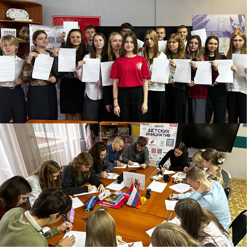 Малыгина Виктория, студентка 4 курса Института экономики и управления, наставник волонтерского отряда МБОУ-Гимназия № 34 г.Орла, провела вместе со школьниками патриотическую акцию «Письма Победы». Волонтеры школьники написали письма и изготовили открытки участникам СВО, участникам ВОВ к памятным датам. В акции приняли участие более 30 школьников из разных классов.