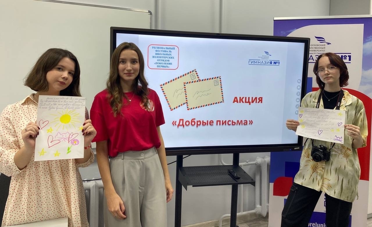 Активисты волонтерского отряда «Монолит Добра» Гимназии № 1 ОГУ имени И.С. Тургенева поучаствовали в акции под названием «Письма Доброты». Цель инициативы — поделиться теплом, вниманием и поддержкой с теми, кто особенно нуждается в добром слове. Автором идеи и координатором акции стала наставница отряда, студентка Института экономики и управления ОГУ имени И. С. Тургенева Полина Шабалина. В мероприятии приняли участие 20 человек.