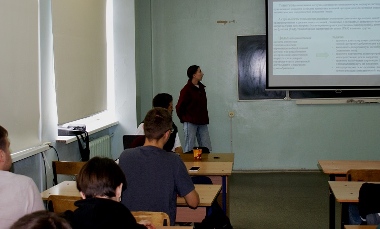 - «Исследование кровотока в сонной артерии до и после когнитивной нагрузки» (Елизавета Чирясова, студентка группы 21БС) под руководством доцента А.В. Жидкова,