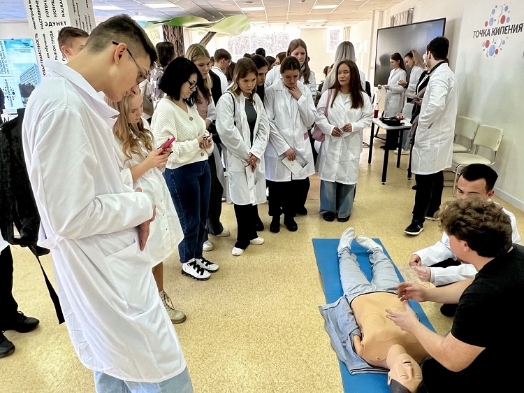 После торжественной части участники погрузились в мир практической медицины и приняли участие в мастер-классах насыщенной интерактивной программы «Профессиональный калейдоскоп». Ребята попробовали себя в роли настоящих врачей: надели белые халаты и с помощью оборудовании Акредитационно-симуляционного центра делали уколы, оказывали первую помощь, останавливали кровотечения, накладывали повязки и шины, осматривали новорожденных и консультировали как стоматологи. Интерактивная секция, организованная студентами Медицинского института под руководством куратора проекта «Медицинский класс в Орловской школе» Лилии Королёвой вызвала большой интерес, как у школьников, так и у их родителей и гостей мероприятия.