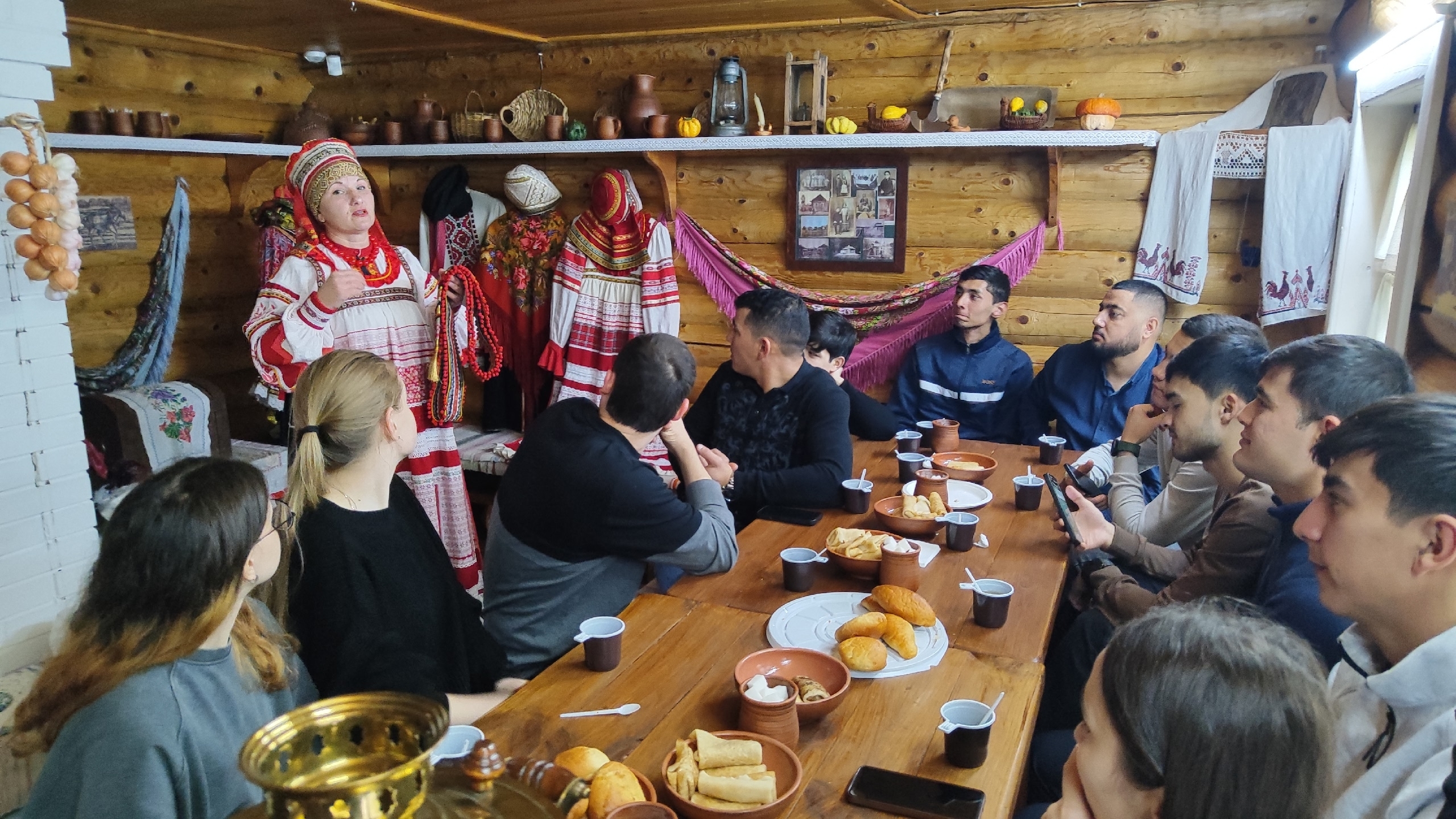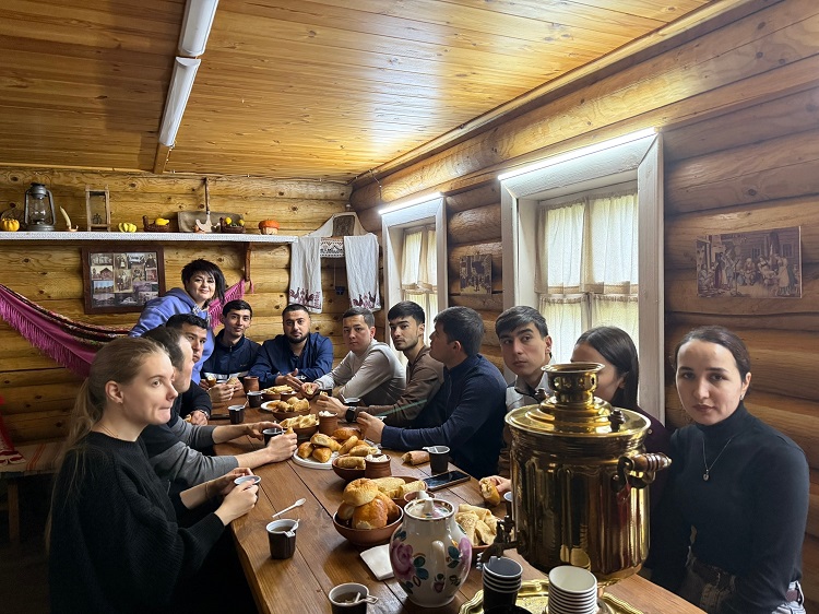 В завершении программы студенты посетили банный дом, где попробовали угощения традиционной русской кухни: блинчики и пироги с разнообразными начинками, а также травяной чай. Также студенты прослушали рассказ о быте русских крестьян, примерили традиционные костюмы Орловской губернии. Посещение усадьбы И.С. Тургенева стало для студентов интересным культурным опытом, который позволил не только лучше узнать личность великого писателя, но и познакомиться с русской культурой.