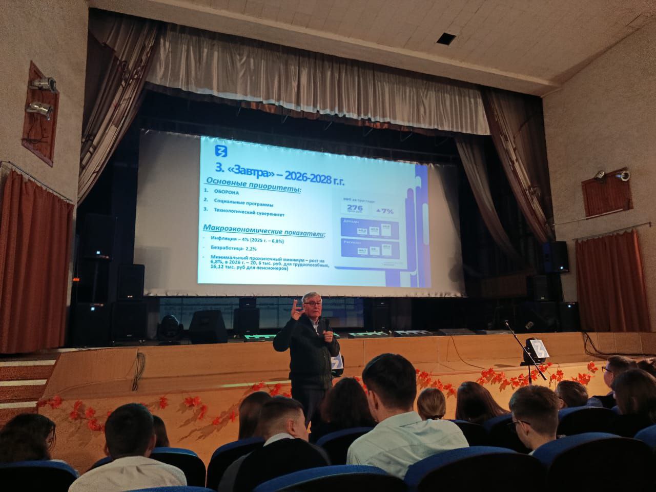 Еще одним спикером стал доцент кафедры маркетинга РУДН Александр Зобов. Его выступление на площадке лектория в Колпнянском районе было посвящено теме «Экономика России: вчера, сегодня, завтра».