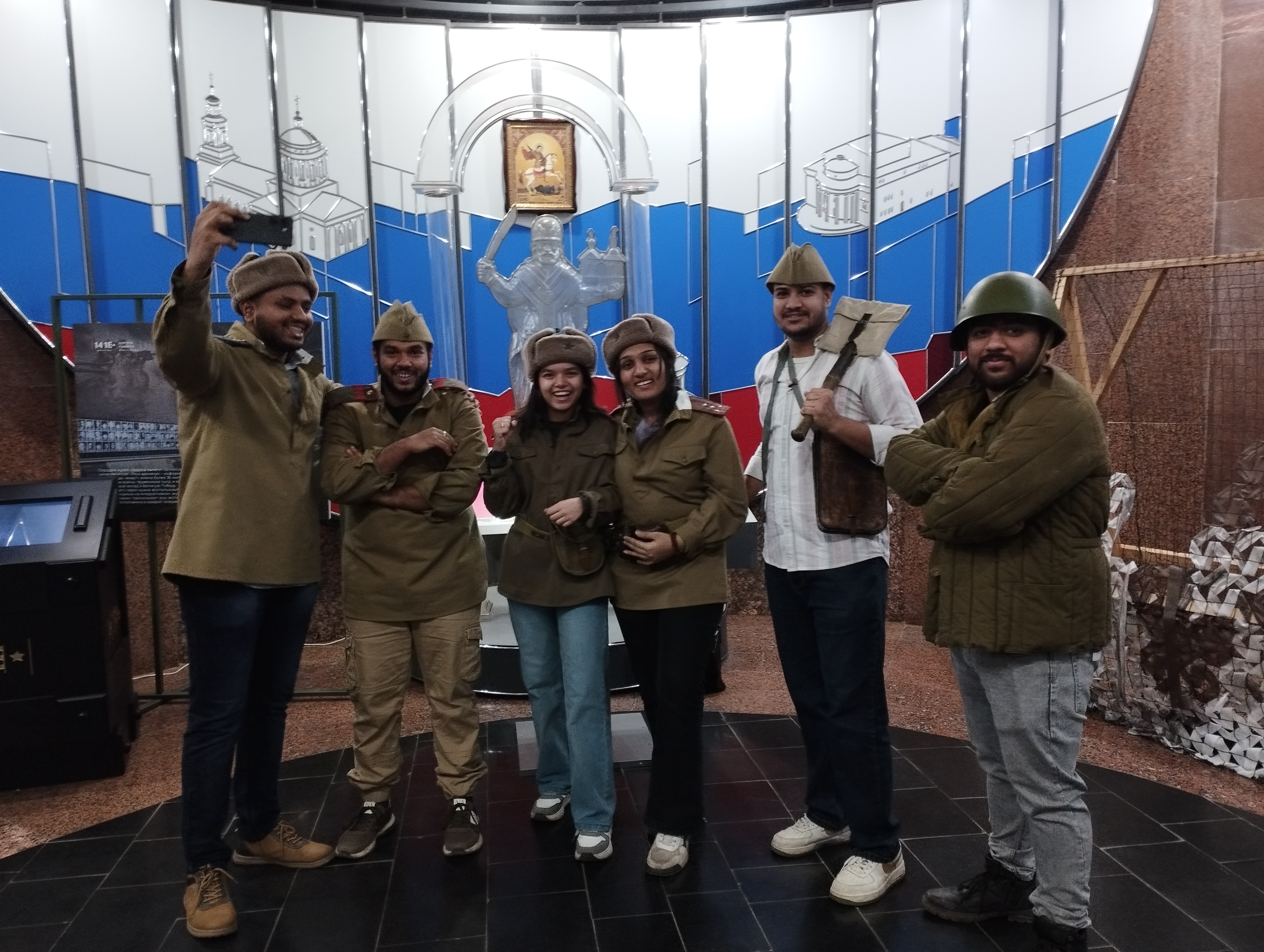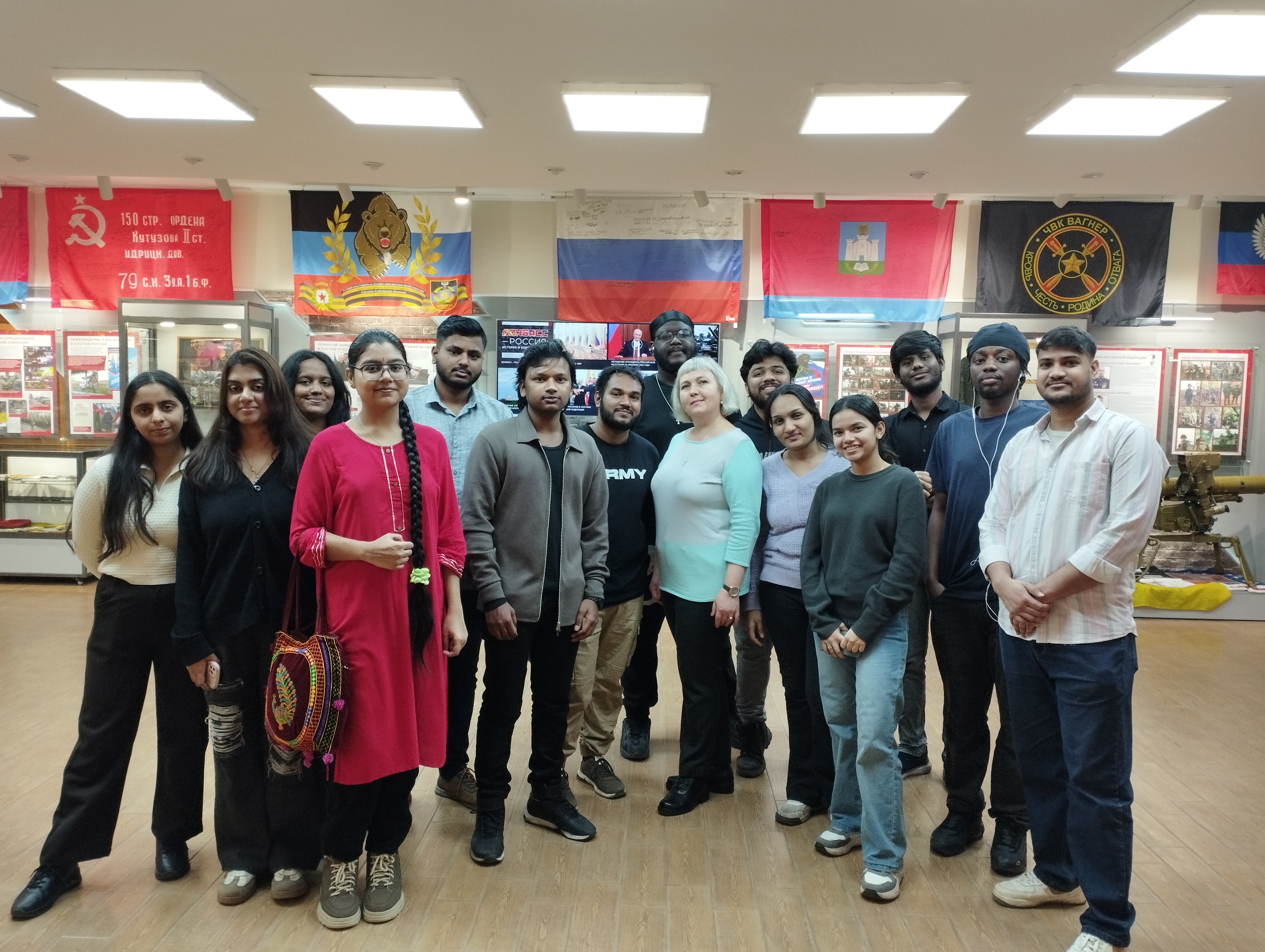 Студенты из Индии познакомились с историей Орловского края, интересными экспозиционно-художественными комплексами, документами и фотографиями, рассказывающими о событиях Русско-японской войны, Первой мировой и Гражданской войн. Иностранные студенты восхитились уникальными произведениями искусства — двумя диорамами, принадлежащими кистям известного советского и российского живописца, народного художника СССР, лауреата Государственной премии РСФСР им. И.Е. Репина Андрея Ильича Курнакова. Посетили залы, посвященные участию орловцев в локальных военных конфликтах второй половины XX века и экспозицию, посвященную специальной военной операции, которая продолжается в настоящее время. Самым запоминающимся событием стала возможность с гордостью примерить форму русских солдат и отправить фото близким в Индию.
